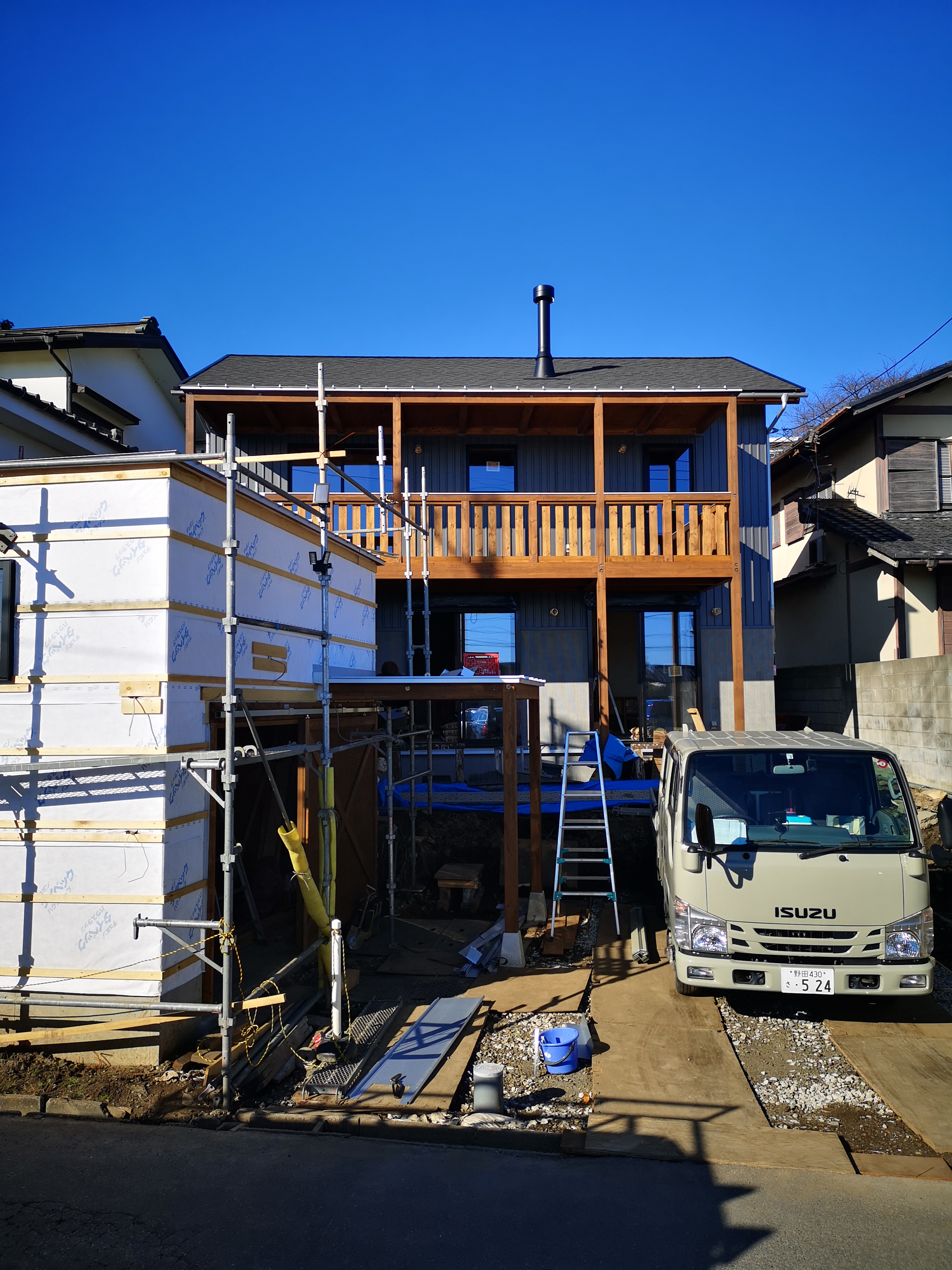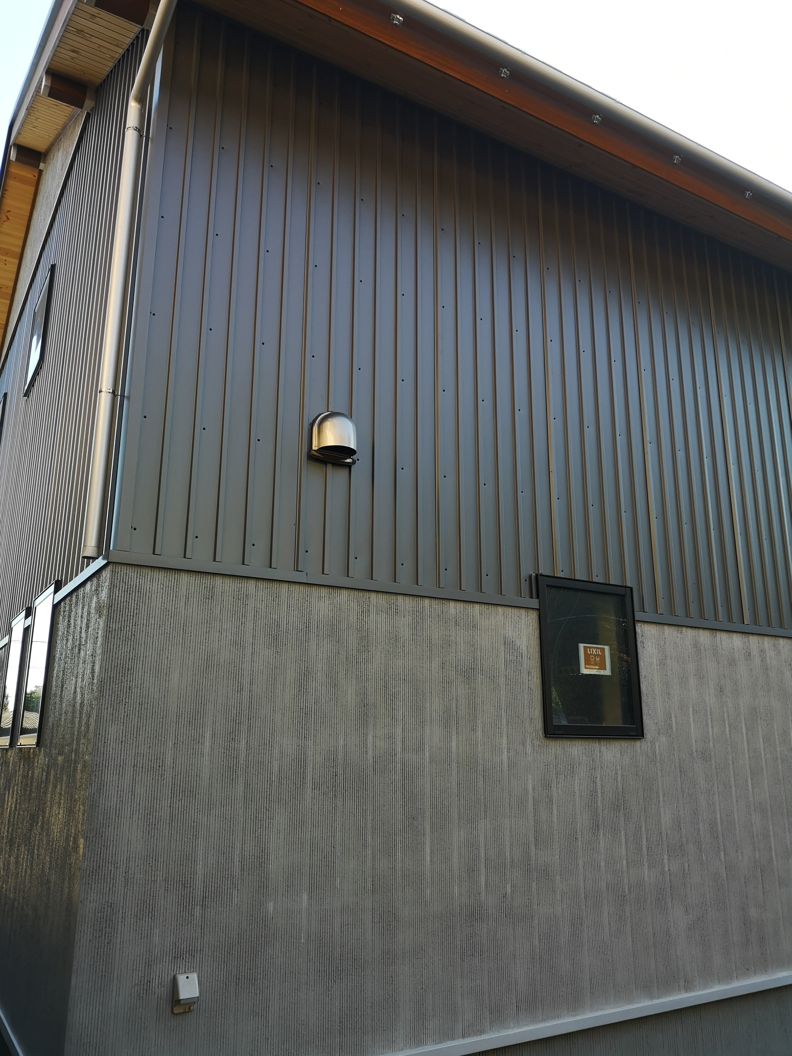 外壁はガルバリウム鋼板とモルタル掻き落としのシンプルな仕上げです。