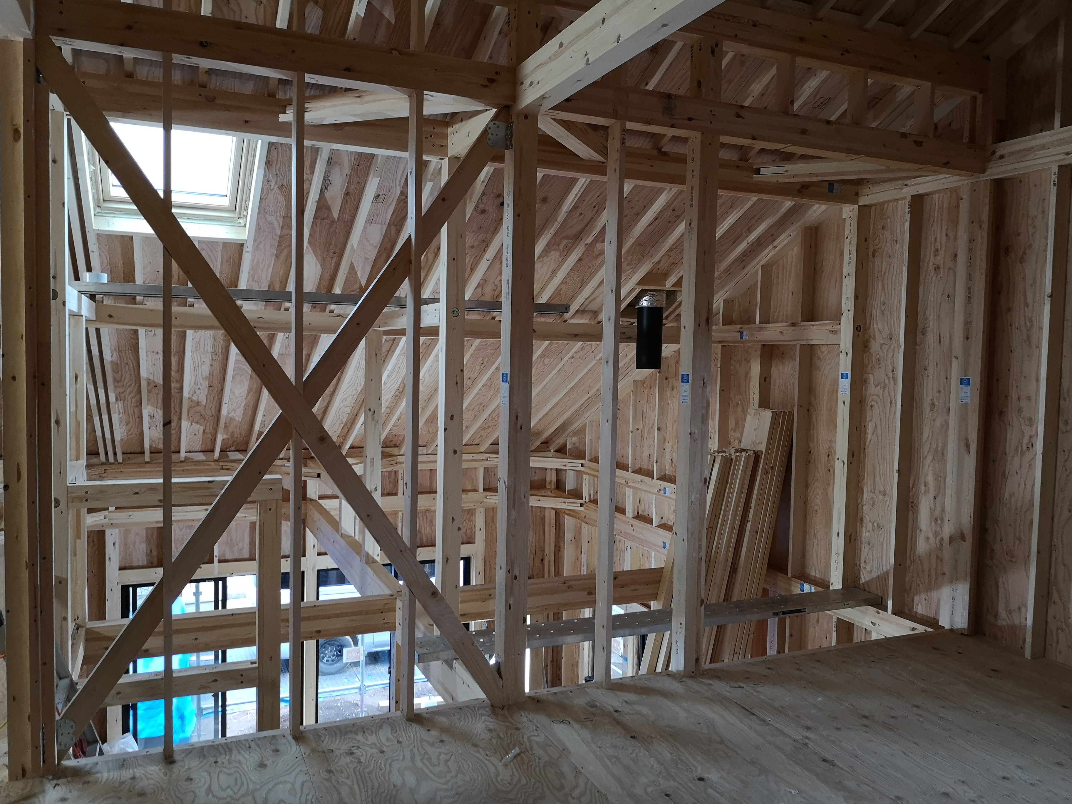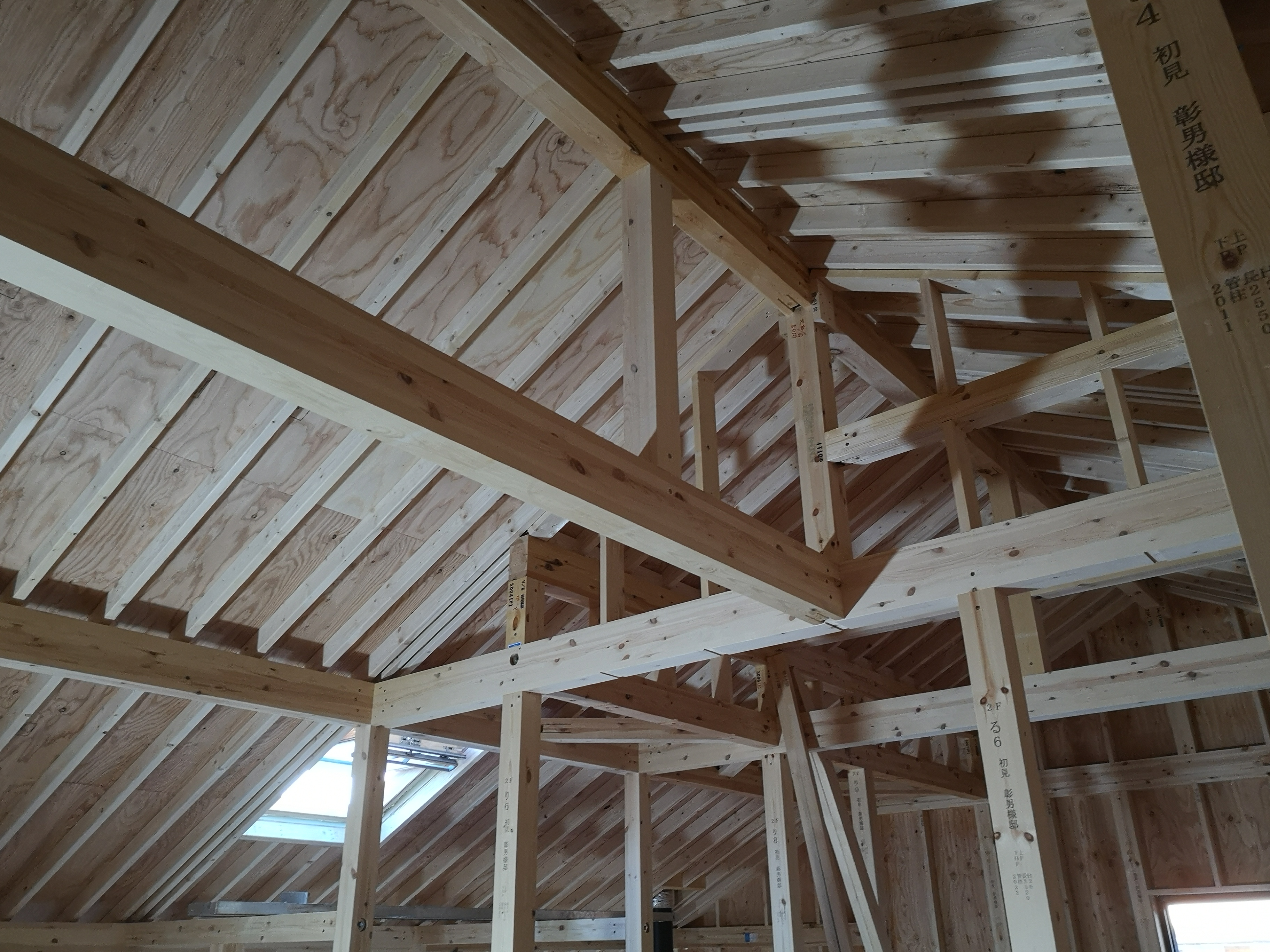 建物の耐震性を高めるため筋交いを、たすき掛けとしました。