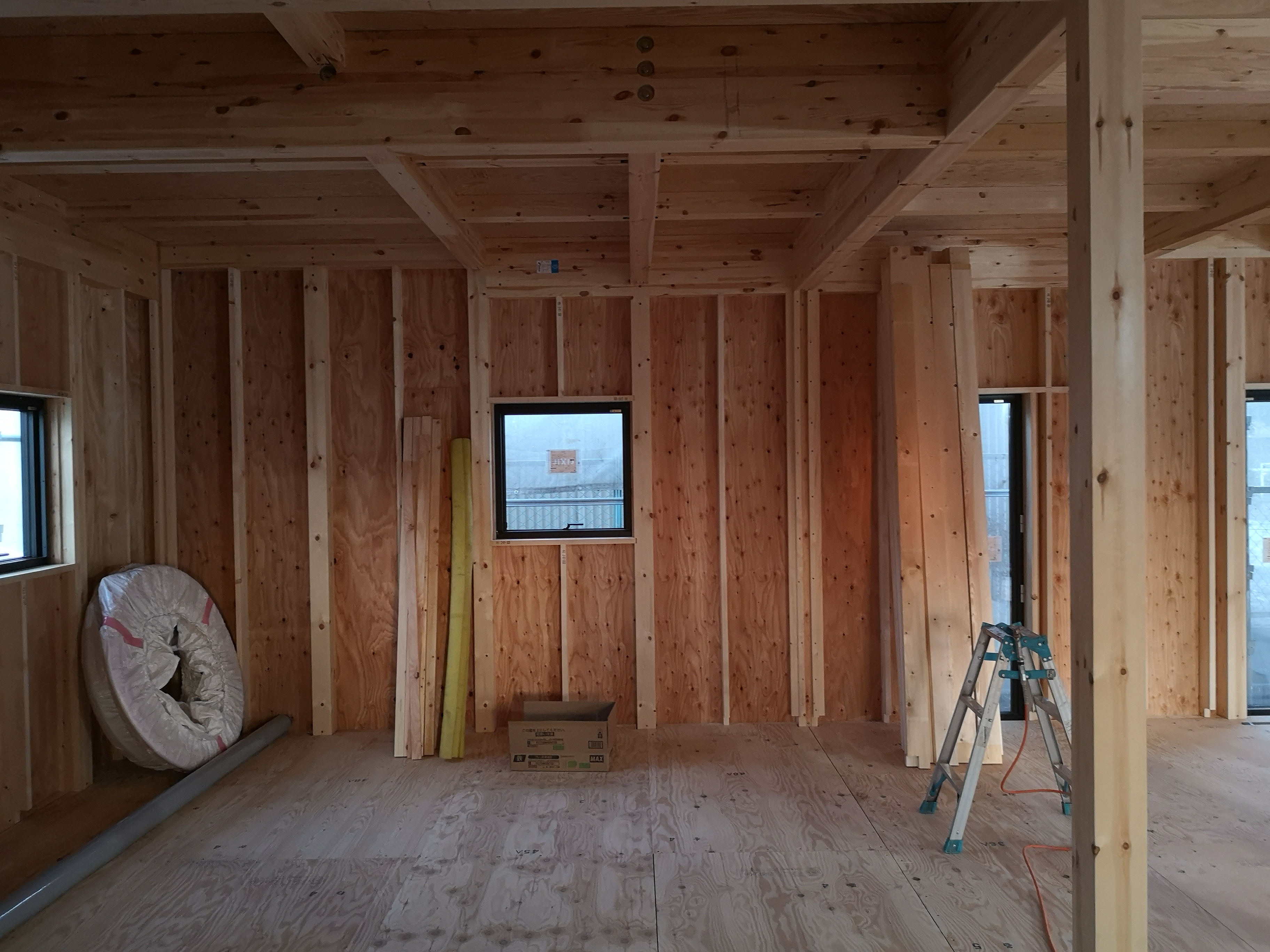 2月下旬に上棟式を行い、現在も安全に配慮しながら施工しております。
