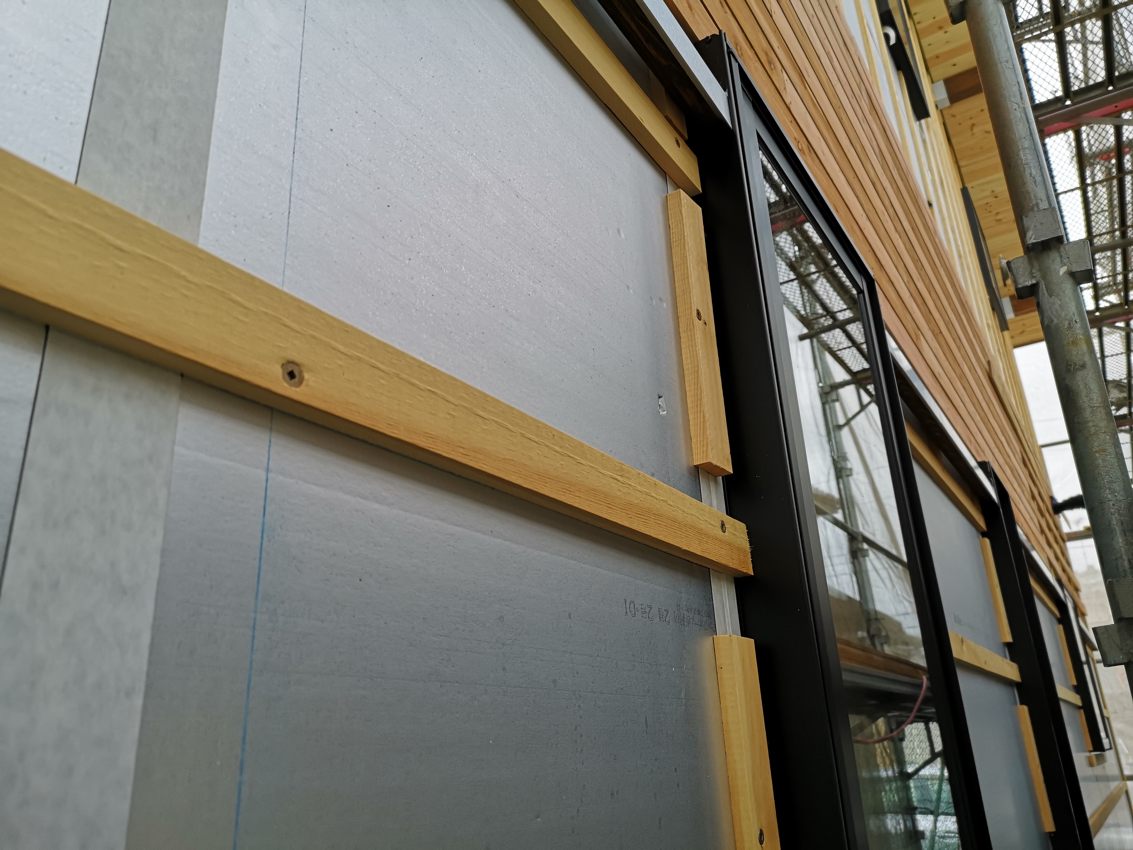 通期胴縁、外壁下地貼付けまですすんでいます。