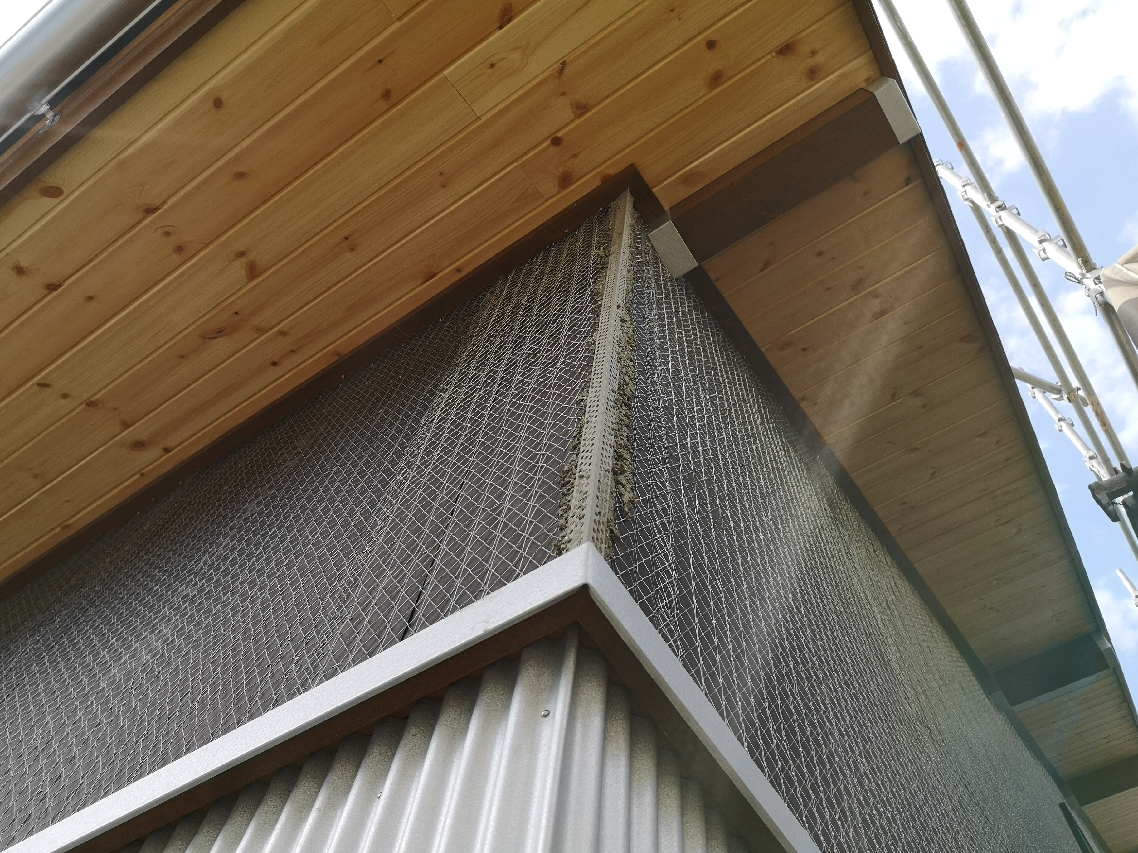 ラス網を張り、モルタルを塗る下準備が進められています。